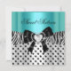 Douce Seize 16 Anniversaire Fête Teal Bleu Zèbre Points Noir Blanc Argent Diamant Bijou Arc Invitation Fête d'anniversaire Élégant. Zizzago