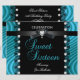 Douce Seize Seize 16e Invitation Formel Soirée Fête Evénement Argent Sarcelle Bleu Dentelle Noir Blanc Noir Cravate Argent Métal. Utiliser pour toute invitation d'événement Personnaliser pour modifier ou ajouter des détails.