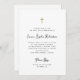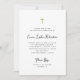 Cette invitation religieuse de première communion, simple et élégante, noire et blanche, présente une typographie de style vintage et fantaisiste, ainsi qu'une fausse croix d'or. Un style élégant, classique et minimaliste qui est encore unique et contemporain et aussi neutre pour un garçon ou une fille.
