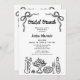 Whimsical Black Hand Drawn Bridal Brunch Shower Invitation Douche douce et audacieuse brune brune nuptiale invitation avec divers aliments, boisson, fleurs et arcs. Cette petite invitation à la douche de nuptiale est entièrement modifiable.