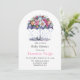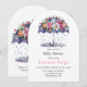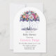 Cette délicate illustration d'aquarelle présente un parapluie bleu foncé orné de fleurs roses, rouges et jaunes vibrantes, attrapant de douces gouttes de pluie bleues - un beau symbole de la joie et des bénédictions qui s'offrent aux parents à leur baby shower.