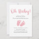 Cette invitation à la douche pour bébé fille vous permet d'invitation des invités à un baby shower traditionnel, avec une option virtuelle en ligne pour ceux qui ne peuvent pas physiquement assister à cause de la distance ou d'autres circonstances. L'avant présente "Oh Baby!" dans un script de pinceau rose pastel et une aquarelle rose coordonnant pieds bébé, et vous pouvez facilement personnaliser la date de douche, l'emplacement, le registre et un contact pour plus d'informations ou à RSVP. À l'envers, vous pouvez fournir des détails pour rejoindre la douche virtuellement.