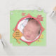 Nouveau cadre photo bébé en vert et orange doux. Remplacez la photo modèle par la photo de votre bébé.