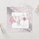 Adorable bottes roses, suces, bottes et lapin sur une ligne de tissu rose et gris damassé invitation à la douche bébé fille. Vous pouvez facilement customiser cette élégante invitation de baby shower rose et gris en ajoutant vos détails d'événement, le style de police, la taille et la couleur de police et le libellé.