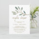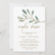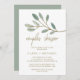 Cette carte d'invitation à la douche aux couples d'eucalyptus veinés en or est parfaite pour une douche de mariage élégante. Le design simple et somptueux présente une parties scintillant en faux or superposant les branches de feuilles verts d'olivier. Remarque : Ce design ne comporte pas de véritable parties scintillant en or. C'est un graphisme de haute qualité fait pour ressembler à un shimmer d'or.