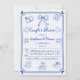 Balises blanches et bleues dessinées à la main, retro style français mariage couples douche Invitation. Cette invitation dessinée à la main est la meilleure façon d'annoncer votre wedding shower, avec un style français fantaisiste et rétro. Le design est un merveilleux jeu de bleu et de blanc, avec des gribouillis ludiques de coeurs, un anneau, et un arc dressé contre un arrière - plan de rayures bleu pâle et blanc. La police manuscrite et la charmante charpente ornée de coeur apportent une touche finale d'élégance à cette invitation unique.
