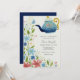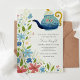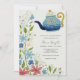 Invitation wedding shower avec une bordure de fleurs multicolores avec verdure qui s'écoule d'une mignonne théière lunatique. Customisez avec vos informations pour que la mariée soit mariée. Cliquez sur "cliquer pour customiser plus loin" pour modifier le style, la taille ou la couleur de la police.