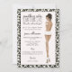 Offrez à la mariée une douche sexy en lingerie avec une invitation chic avec un arrière - plan empreinte de léopard et la mariée à être dans ses culottes. Satin rouge et dentelle en peluche sur le dos avec les tailles de lingerie de la mariée. Choisissez la couleur des cheveux et le teint de la mariée parmi les options disponibles.