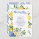 Invitation a aimé les personnes à une fête fraîche et élégante avec cette Main Squeeze Méditerranéenne Lemon Bridal Shower Invitation! Dotée d'un superbe design d'inspiration méditerranéenne avec des citrons jaunes vibrants, des fleurs bleues et jaunes, une végétation luxuriante et des accents bleus classiques, cette invitation évoque le charme des jardins côtiers ensoleillés. Parfait pour une douche de mariée au citron ou à thème méditerranéen, il allie sophistication et fantaisie. Entièrement personnalisable, c’est la façon idéale de donner le ton à un événement lumineux et joyeux.