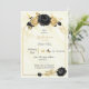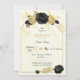 Fleurs noires et or simples et élégantes sur un cadre géométrique sur marbre blanc et or arrière - plan invitation à la douche nuptiale Les détails de la parties scintillant sont simulés
