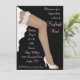 Une invitation qui est tellement amusante que votre douche ne peut s'empêcher d'être une explosion! Doté d'une grande jambe foncée et allongée, d'une mariée avec une dentelle et un jarret rose et des chaussures blanches avec un arrière - plan noir. Le texte peut être customisé selon vos besoins. Au verso, il y a du texte pour les tailles de la mariée si vous voulez les inclure, si ce n'est supprimer le texte ! Poster correspondant disponible!