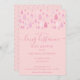 De mignonnes gouttes de pluie rose bébé tombent vers vos détails personnalisés sur un arrière - plan rose bébé, ce baby shower mignon, saupoudré ou couples douche par invitation par courrier est parfait pour tous les petits qui sont en chemin. Ajoutez les détails de votre célébration dans un texte élégant pour créer l'invitation parfaite. Conçu par Thisisnotme©