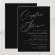 Simples couples douche des invitations avec "Douche Couple" affiché dans un script de calligraphie blanc avec un arrière - plan noir. Personnalisez les invitations à la douche du couple noir et blanc avec les noms du couple et les détails de la douche ci-dessous. L'invitation de douche du couple moderne s'inverse pour montrer un arrière - plan noir solide.