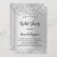 Une invitation à la douche nuptiale moderne et élégante. Arrière - plan à l'aspect argent faux décoré de confettis. Personnalisez et ajoutez un nom et des détails du parti.