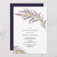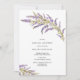 Une élégante invitation à la douche nuptiale de lavande florale classique chic avec branches et fleurs de tiges botaniques de lavande violette, feuillage vert et marron et calligraphie élégante.
