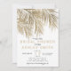 Moderne simple faux palmier doré avec typographie simple, une fête de douche nuptiale branchée et tropicale sur feuille de palmier avec arrière - plan blanc personnalisable.