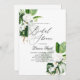 Belle invitation à la douche nuptiale de plage, protéa fleurie blanche et orchidées, thème nuptiale verte