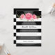 Elégante / moderne invitation à la douche nuptiale avec rayures noir et blanc arrière - plan avec arrangement rose rose et robe nuptiale sur arrière - plan.