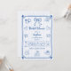 Bracelet blanc et bleu dessiné à la main rétro style français mariage douche nuptiale Invitation. Célébrez vos noces à venir avec cette invitation merveilleusement décalée et fantaisiste à la douche nuptiale! Le design dessiné à la main présente des doodles bleus ludiques comme des coeurs, un anneau et un arc sur fond de rayures bleu pâle et blanc. La police manuscrite et le cadre orné de coeur apportent une touche de charme supplémentaire, ce qui en fait la meilleure façon pour les invitations de célébrer avec joie.