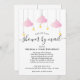 Douche par courrier longue distance bébé fille rose invitation avec de mignons nuages roses bébé et étoiles dorées sur cordes sur un arrière - plan blanc. Cette jolie petite fille rose douche, saupoudrée ou couple douche par courriel est parfaite pour toutes les petites filles en chemin. Personnalisez vos détails de célébration dans une typographie élégante pour créer l'invitation parfaite. Conçu par Thisisnotme©