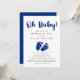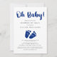 Célébrez la future mère moderne de loin avec un baby shower par la poste. Cette invitation à l'baby shower, simple et minimaliste, est sans distinction de sexe et comprend "Oh bébé !" dans un script de pinceau bleu marine et un aquarelle bleu marine de coordination des pieds de bébé. Vous pouvez facilement personnaliser avec la douche par les détails de la poste, y compris les informations de registre, où envoyer des cartes et des cadeaux, si la maman-to-be organisera un événement en direct en streaming ou poster des photos de son ouverture des cadeaux, et où obtenir plus d'informations.