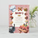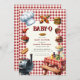 Lancez le grill pour une fête de baby shower amusante et savoureuse avec cette invitation charmant "Baby-Q"! Avec d'adorables aquarelles illustrant les plats classiques du barbecue comme les hamburgers, les hot dogs, le maïs sur le berceau et les haricots à la sauce tomate, le tout dressé contre un arrière - plan en vichy classique rouge et blanc. Cette invitation reflète parfaitement l'esprit décontracté et festif d'un baby shower jardin BBQ. Idéal pour inviter amis et famille à honorer les parents à l'occasion d'un événement délicieux et mémorable. Faites de votre baby shower un succès "fumeur" grâce à ce design unique et attrayant.