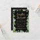 Cette invitation à la douche en couple de 3,5 po x 5 po (petite) personnalisable comporte une bordure illustrée de fleurs vertes, grises et bleues avec un arrière - plan de couleur noire (qui peut être changé à votre goût). Le texte "Couples Shower" est une police de caractères dorée et moderne. Les noms des futurs mariés et futurs mariés ainsi que les détails de l'événement peuvent être customisés pour votre événement spécial. Le côté arrière est une couleur noire (changeable également) assortie d'un motif de carrelage doré.