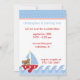 Ours adorable dans un petit voilier. Parfait pour les invitations à la fête d'anniversaire ou à la douche bébé.