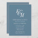 Dusty Blue Elegant Classic Monogram Mariage Rehearsal Lunch Invitation Card. Célébrez votre journée spéciale avec cette belle et élégante carte de faire-part de mariage pour embellir votre occasion spéciale. Tous les textes sont pré-arrangés pour que vous personnalisiez facilement et rapidement avec vos propres détails.