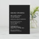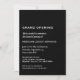 Faites-vous plaisir avec notre Simple Minimaliste Grand Ouverture Invitation. Cette invitation donne le ton parfait pour le grand jour de votre entreprise, avec un design minimaliste moderne simple avec typographie classique sur un arrière - plan noir élégant. Personnalisez avec le nom de votre entreprise, les détails de l'événement et les informations RSVP pour créer une invitation mémorable et sophistiquée. Faites une impression durable avec ce design intemporel.