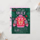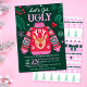 Ce laide pull Noël design dispose d'un laide de Noël moche avec un renne, autour de la frontière du design sont la verdure de Noël, des saints et des baies et des flocons de neige sur un arrière - plan vert foncé. Sur le dos de l'invitation est un motif de crochet rose, vert et blanc pull tricot laide. Vous pouvez customiser tous les détails de votre événement. Vous pouvez même le modifier pour convenir à une fête de Noël d'entreprise en changeant les noms d'hôtes en nom de société. Voir l'ensemble de la collection correspondante. Toutes les oeuvres sont illustrées à la main par Kaitlyn Thomas et protégées par copyright.