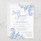 © Socialite Designs Inc. Beau coin tourbillonne et fleurit l'invitation à la douche nuptiale, peinte en couleur bleu royal doux et gris argenté. Une élégante invitation pour toute période de célébration de l'année. Si vous avez besoin d'aide pour customiser ou souhaitez d'autres produits créés avec ce design, n'hésitez pas à contacter Socialite Designs.