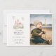 Thème dragon mignon, invitation photo fête d'anniversaire. Château aquarelle et scène de dragon.
