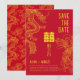 Une carte de sauvegarde de date unique avec un style de dragon et de Phoenix en or sur un fond rouge.