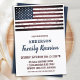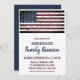 Cartes d'invitation pour fête de retrouvailles de famille avec drapeau américain. Invitez vos amis et votre famille à votre célébration de famille patriotique avec ces invitations grunge au drapeau américain. Personnalisez cette invitation au drapeau américain avec votre événement, votre nom et les détails de la fête.