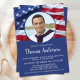 Cartons d'invitation de fête de retraite militaire avec drapeau américain moderne. Ces cartons d'invitation avec drapeau américain sont parfaits pour les retraites militaires, les fêtes d'adieu pour les soldats, les départs en mission, les célébrations de retour au pays et les remises de diplômes militaires. Personnalisez cette invitation avec drapeau américain avec l'événement de votre soldat, son nom et les détails de la fête.