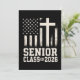 Mise en page audacieuse de la classe supérieure 2026 avec des éléments de drapeau américain et de croix. Idéal pour les étudiants fiers de leurs valeurs et prêts à obtenir leur diplôme avec brio.