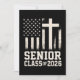 Mise en page audacieuse de la promotion 2026 avec des éléments de drapeau américain et de croix. Idéal pour les étudiants fiers de leurs valeurs et prêts à obtenir leur diplôme avec brio.