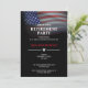 Drapeau américain glorieux flottant sur un fond noir. Un modèle de fête de retraite élégant facile à éditer. Ce design élégant convient aux vétérans, aux militaires, à la police, aux emplois liés au gouvernement ou aux emplois liés au patriotisme.
