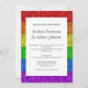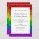 Personnalisez l'invitation faux brillant avec vos initiales et noms et informations de mariage homesexual. Célébrez votre amour avec une papeterie unique et stylisée même genre mariage. Un drapeau LGBT scintillant dans une parties scintillant vibrante rouge, orange, jaune, vert, bleu et violet brille. *photo de scintilles pas de parties scintillant réelle!