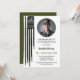 Cette invitation de fête de remise de diplôme unique présente un drapeau de ligne verte fine aquarelle en détresse avec un design moderne. Cette invitation peut être utilisée pour n'importe quelle branche du service, car la couleur du drapeau est modifiable ! Ajoutez facilement votre propre photo et personnalisez à votre goût !