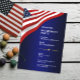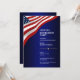 Drapeau américain glorieux flottant sur un fond bleu foncé. Un modèle de fête de retraite élégant facile à éditer. Ce design élégant convient aux vétérans, militaires, policiers, emplois liés au gouvernement ou emplois liés au patriotisme.