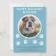 Célébrez la journée spéciale de votre chiot avec ce fanion adorable ! Parfait pour n'importe quelle fête de chiot, ce fanion présente un magnifique fond bleu avec des empreintes de pattes blanches. Personnalisez-le avec le modèle de photo de votre chiot pour en faire une journée vraiment spéciale ! Accrochez-le et préparez-vous à passer un moment formidable ! Faites de l'anniversaire de votre chien un jour inoubliable avec ce fanion unique et amusant !
