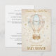 A soft, dreamy baby shower invitation featuring a pastel hot air balloon floating among fluffy clouds, golden stars, and gentle hearts. At the center, a peacefully sleeping baby rests in a cozy basket with a tiny teddy bear, creating a warm and magical atmosphere. With its elegant gold lettering and watercolor style, this invitation is perfect for celebrating the arrival of a little one. Ideal for baby showers, gender-neutral events, and nursery-themed celebrations.