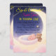 Célébrez le premier anniversaire de votre petit avec cette invitation rêvée avec un bébé endormi dans un berceau de lune, entouré de nuages pastel doux et d'étoiles scintillantes. Des montgolfières fantaisistes ajoutent une touche de magie à cette étape spéciale !