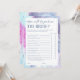 Invitation Dreamy Bridal Shower Questionnaire Game Card