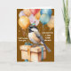 Invitez les invités avec une mésange à l'aquarelle fantaisiste perchée sur un cadeau, portant un chapeau d'anniversaire, avec des ballons flottant derrière. Cette invitation humoristique de fête d'anniversaire ajoute une touche ludique avec humour d'observation, parfaite pour les amateurs d'oiseaux et quiconque aime une célébration légère !