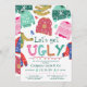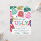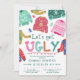 Amusant kitsch et moche pull pastel blanc d'entreprise invitation de Noël. TOUTES les couleurs d'illustrations sont modifiables ! Faites preuve de créativité avec ce pull de Noël moche amusant, avec une typographie laide à la main. Sur blanc modifiable.