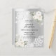 Pour un 10e anniversaire de mariage élégant et romantique. Un faux arrière - plan argenté décoré de fleurs blanches, de roses et de dentelle blanche. Personnalisez et ajoutez vos noms et détails. 1 feuille = 1 invite imprimé bord à bord.