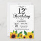 Invitation du 12e anniversaire du tournesol. Fleurs florales et Arrière - plan blanc. Country Vintage Retro. Enfants Fille anniversaire. 12ème 13ème 15ème 16ème 18ème 20ème 21ème 30ème 40ème 50ème 60ème 70ème 80ème 90ème 100ème, tout âge. Numérique imprimable. Pour plus de personnalisation, cliquez sur le bouton "Customiser" et utilisez notre outil de conception pour modifier ce modèle.